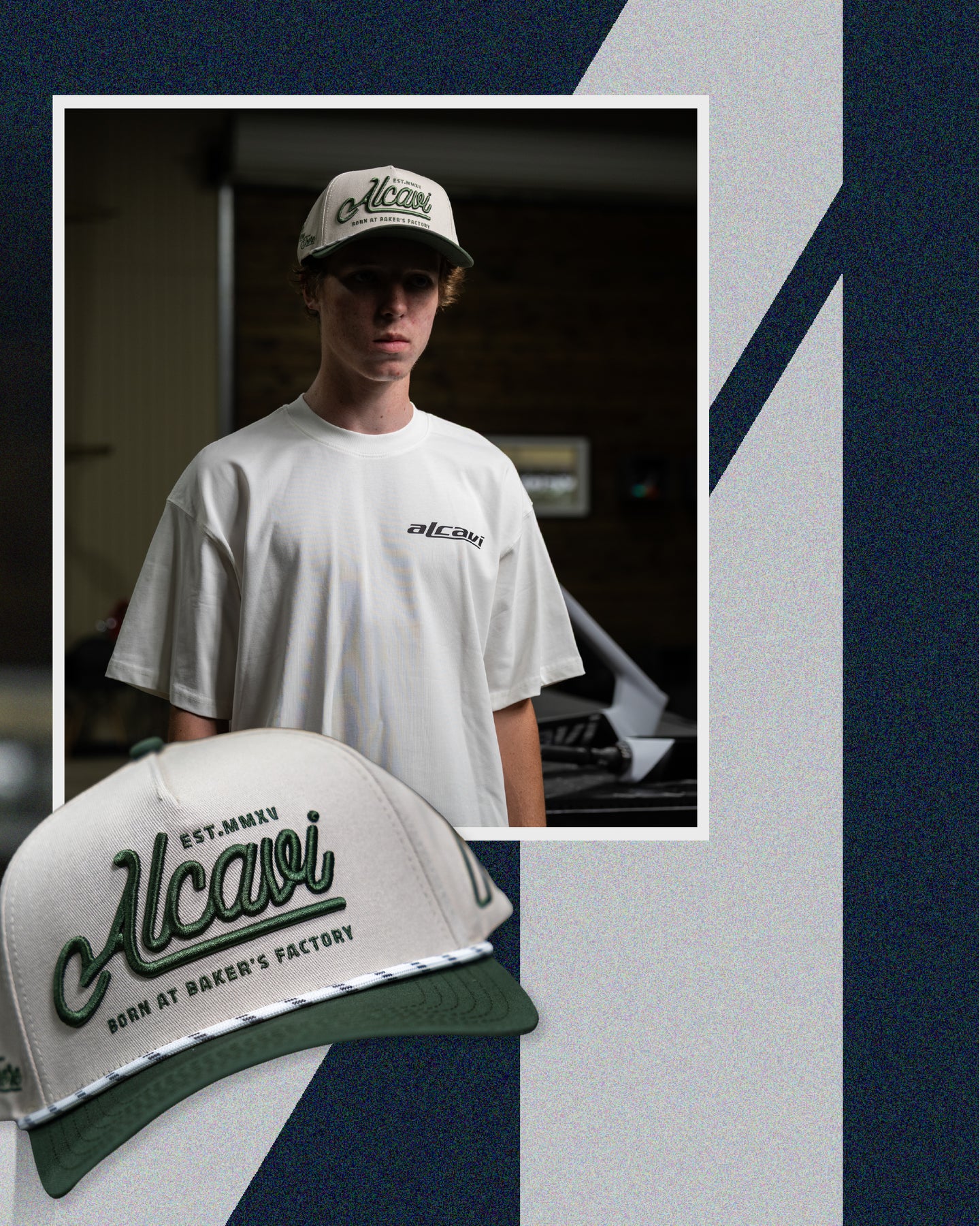 Designed for those who value timeless style and authentic details, the Heritage Cap blends classic aesthetics with modern craftsmanship. Featuring Alcavi’s vintage script in raised forest-green embroidery, contrast stitching throughout, and our signature Born at Baker’s Factory mark, this cap reflects the roots of the Alcavi identity.